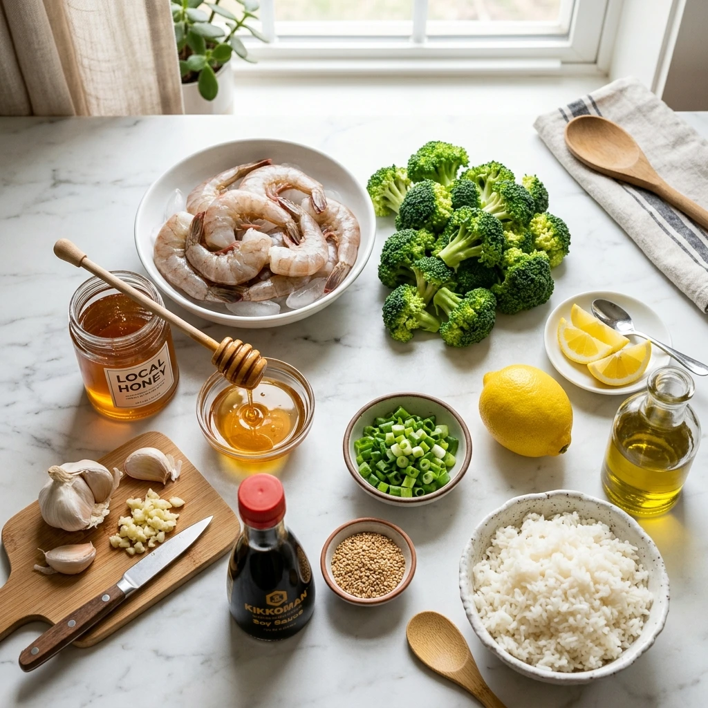Ingredients & Measurements for Honey Garlic Shrimp with Broccoli